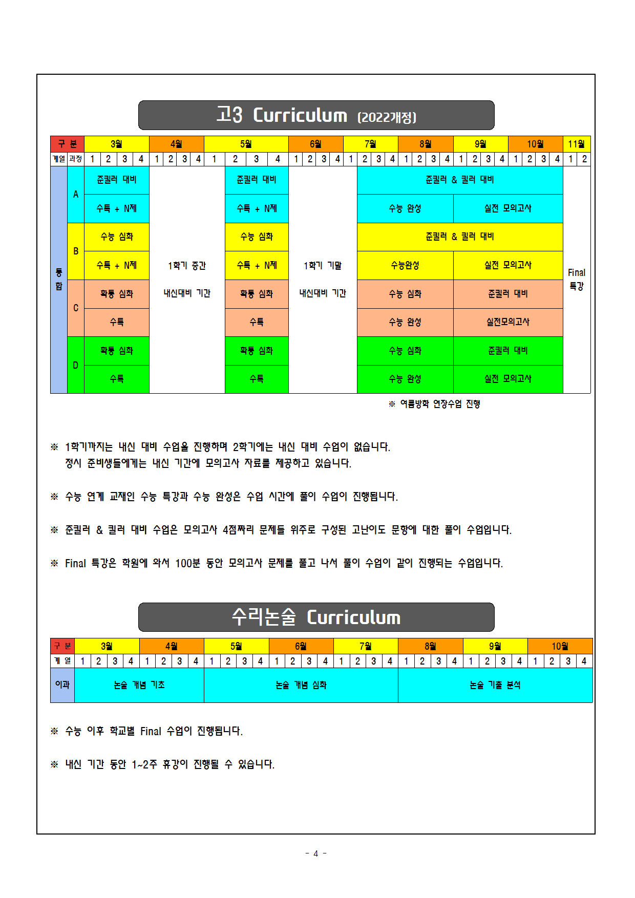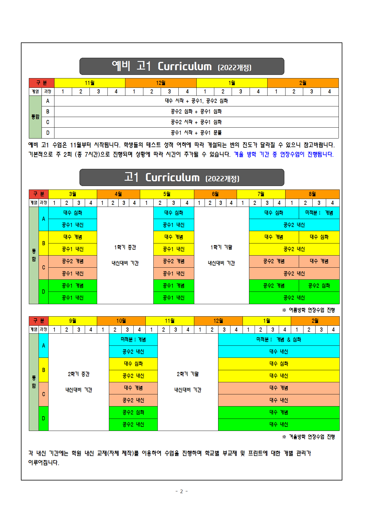 해병 수학에서 진행하는 학년별 커리큘럼입니다. 이는 참고 자료이며 해당 학년 학생들의 구성에 따라 조금씩 달라질 수 있습니다.